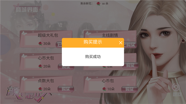3、由于本游戏已经成功破解无限鲜花,我们可以打开商城来直接购买超级大礼包、主线剧情、心币大包等商品。