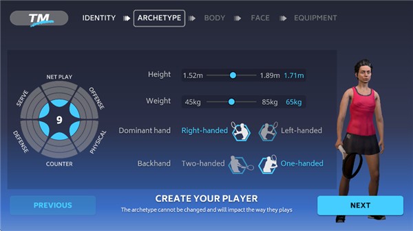 4、设置球员的身高体重、惯用手、反手。