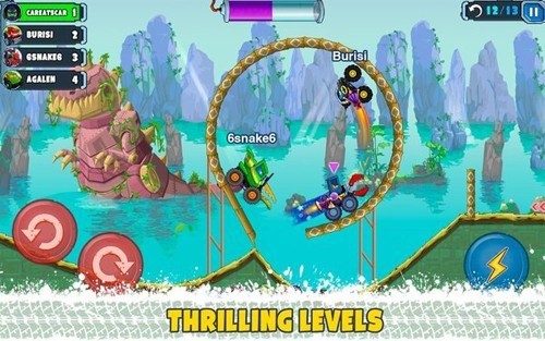 6、积累宝石道具并借助其跳跃赛道障碍物,轻松化解碰撞风险,保持竞速节奏不中断。