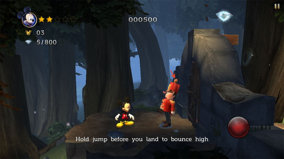3、这里我们可以通过踩到木偶头上蹦到右边拾取钻石。