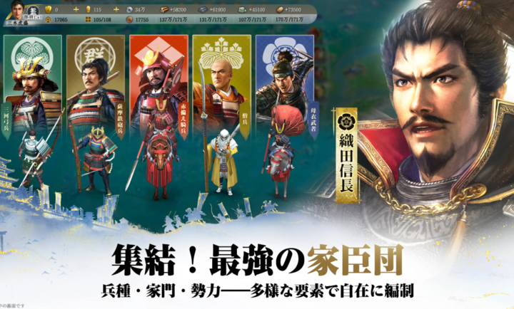 除了轻松的RPG玩法这个大特点之外,《信长之野望真战》在策略玩法上也做了不少新尝试。 游戏中加入非常多战国独特的设定,比如「家门」、「兵种」和「势力」等等,大幅提升玩家的配将空间。