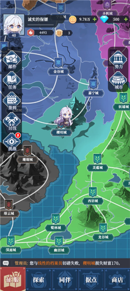作为游戏核心的SLG玩法,玩家需在大地图里对众多城池展开征服与探索。玩家的初始城市是“稷明城”,势力的扩展便从此处开启。