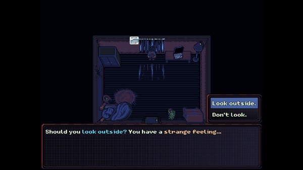 游戏在像素艺术风格中,融入了克苏鲁式的心理惊悚元素。场景中隐藏着诸多令人不安的细节:墙壁仿佛由血肉构成、监控装置形似转动的眼球。角色变异的过程不仅通过视觉上的屏幕扭曲来表现,更配以逐渐异化的音效,共同营造出持续而强烈的心理压迫氛围。