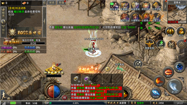 4、当达到一定等级后还可挑战福利BOSS,获取强力装备;