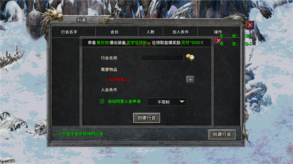 5、另外,玩家还可创建行会,和其他玩家一同打怪爆金。