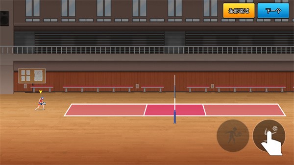 1、来到游戏中就会出现一个教程,直接点击右侧的第一个选项,就能将排球打出去。