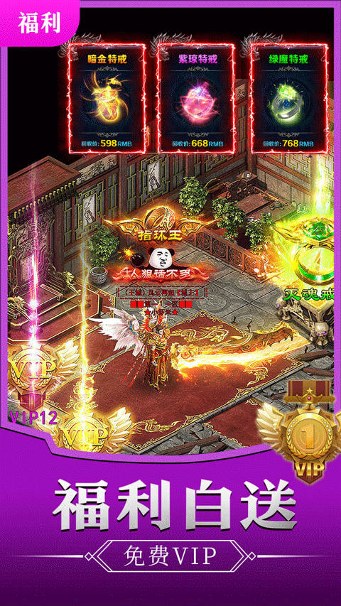 1、经典热血的火爆传奇世界,再战沙场,自由战斗。