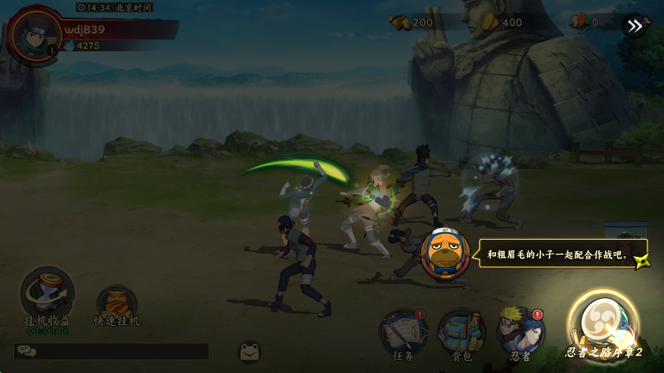 2、战斗中可畅爽释放标志性忍术大招,炫酷特效高度还原,带来极致视觉体验。