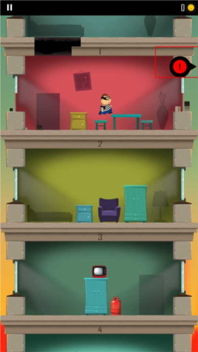 2、当老爸曾是小偷的角色不断跳跃的过程中,左右两边会出现这种红色感叹号,这表示导弹即将发射过来,你需要做的就是做好准备进行躲避。