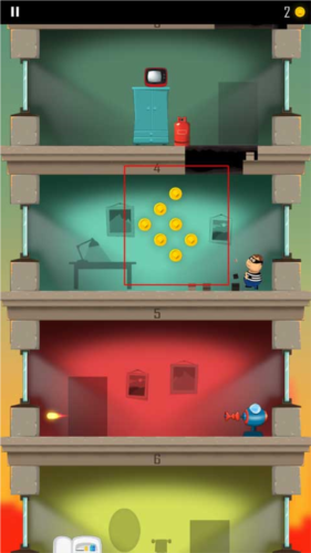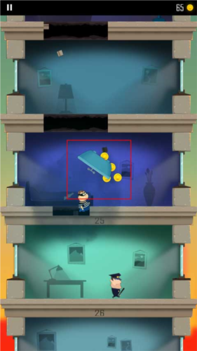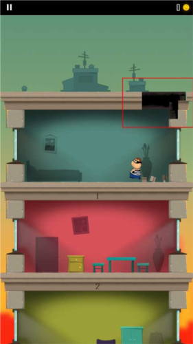 1、老爸曾是小偷游戏开始会有一个小偷开始跑到另一层楼,玩家需要做的就是通过角色屁股着地的方式破开楼层,这样就能不断到达底下那一层了。