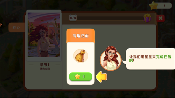 6、通过任务中心我们看到清理路面可以直接通过消耗一颗金星来完成。