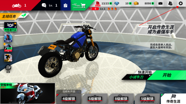 1、进入游戏首页,找到设置图标。