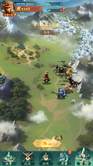 1、进入游戏,进入大黄世界,控制角色开始挑战,挑战不同的异兽提升战斗力。