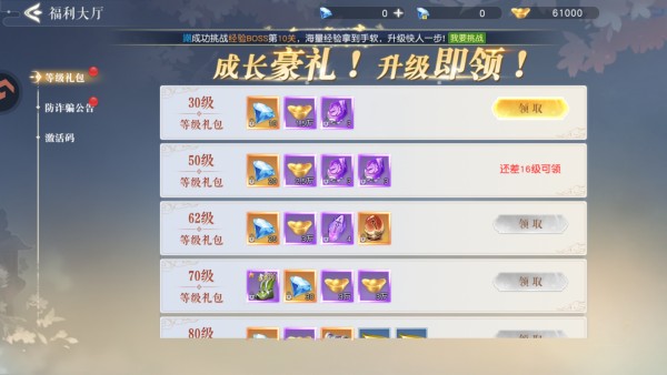 5、升级还有更多奖励福利等你来领取哦!游戏玩法简单,打怪超级快,自动打怪,一路解放双手。