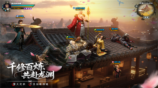 1、千人同屏帮派攻城战热血火爆,多方势力争夺宗门荣耀,社交与竞技双在线。
