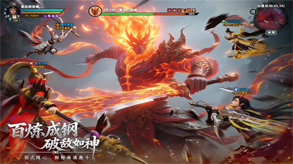 3、自由配招挑战副本 BOSS,解锁灵宠、境界突破等多元成长方式。