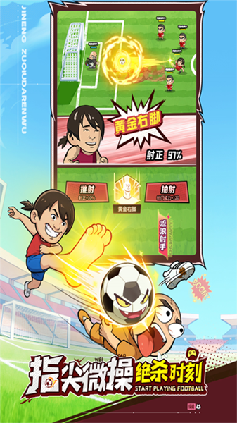 比赛关键节点可自主选择射门方式(推射、抽射、巧射)或防守动作(滑铲、封堵、出击),微操直接影响进球结果。