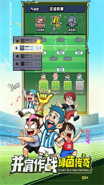足球大人物是一款Q版竖屏足球策略卡牌游戏。每位参与者开局接手一支弱旅,从村级联赛起步,一路拼搏直至打入超级联赛。借助卡池抽取机制可获得不同品质的球员,这套系统附带保底规则,限定卡池必定产出SSR级别角色。比赛开始前,可以自由设定多种阵型与战术方案,随后进入对战阶段,需从三个备选行动中择一执行,每个选项旁边均显示预估成功率。赶快下载游玩吧!