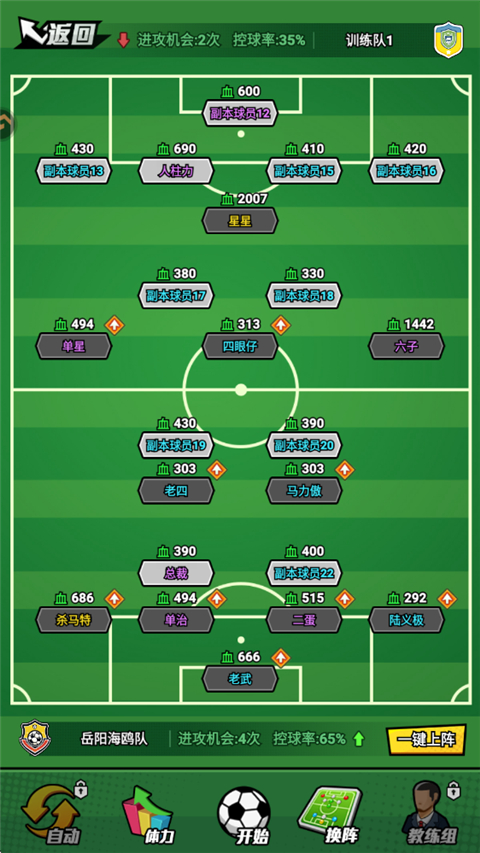 2、进入训练关卡时可以调整阵容,点击开球即可比赛。