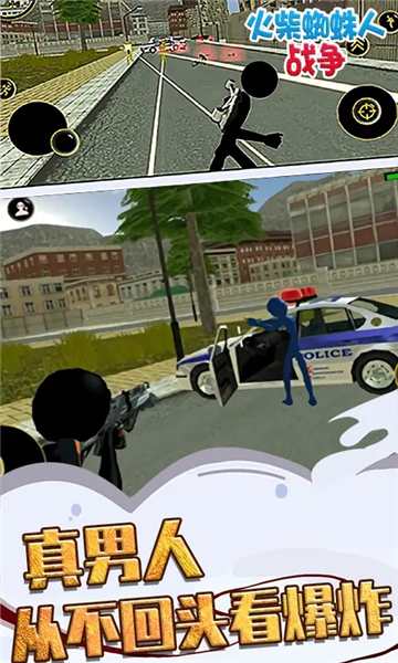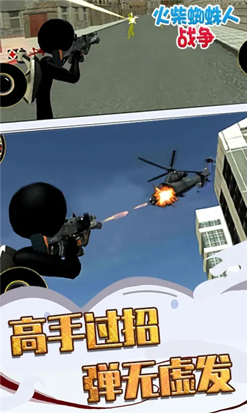 火柴蜘蛛人战争是一款将火柴人形象、蜘蛛侠能力与射击枪战元素融合在一起的游戏。每位操作者扮演一名火柴人造型的蜘蛛侠,在现代都市中对抗黑帮、罪犯以及各类武装势力。游戏里,角色可以发射蛛丝完成高空飞荡,穿梭于高楼之间,还能在墙面上攀爬、垂直奔跑。内置丰富的武器系统,包含手枪、狙击枪等多种型号,每一种枪械拥有独立的弹道轨迹与命中特效。赶快下载游玩吧!