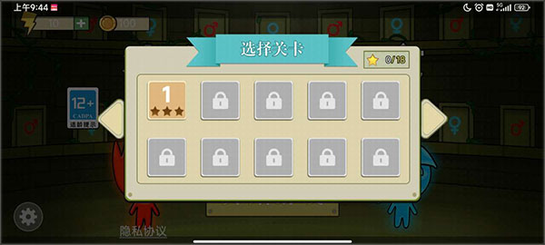 2、选择关卡,完成上一关的关卡任务自动解锁下一关。