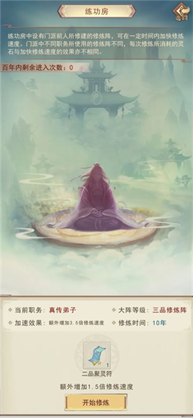 当自身境界达到对应要求后,可前往宗门大殿消耗门派贡献,提升自身门派职务。职务越高,每百年可领取的俸禄越丰厚,且门派内诸多专属区域,均需达到对应职务方可进入。