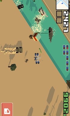 游戏中,玩家将要驾驶汽车在辽阔的地图上与警察进行追捕游戏。操作方面,由于采用了自动加速的设定,玩家只需要通过两个虚拟按键就能够完成汽车的转向。在广阔的地图上,只要你不被围堵或是撞毁汽车,游戏就会一直进行下去。