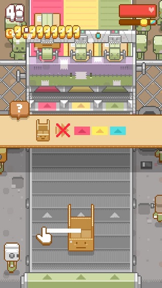 Box It Up! Inc.是一款像素风休闲益智手游,玩家化身包装工厂员工,在传送带上快速分拣颜色各异的盒子,采用竖屏单指操作,滑动屏幕即可控制角色移动,将对应颜色的盒子送入正确通道,轻松打发碎片时间。