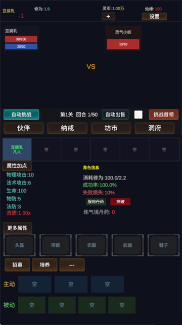 3、最后进入游戏就可以开始踏入修仙之途了。