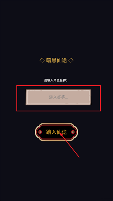 2、输入角色名称,点击“踏入仙途”进入游戏;