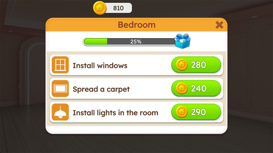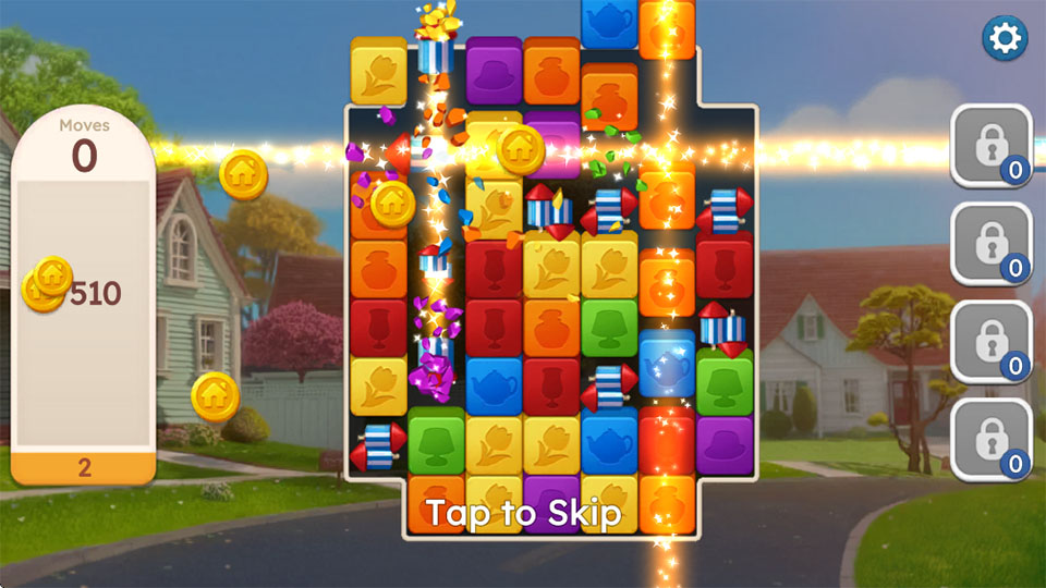 1、 消除闯关:通过匹配相同元素完成目标,获得金币与材料,是推进装修进度的核心手段。