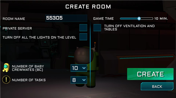 7、完成游戏难度,游戏时间和游戏人数等相关的设置后,点击【CREATE】选项就可以开始游戏了,