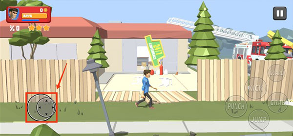 2、当敌人出现时,我们可以点击右侧的PUCH、KICK、JUMP、GRAB按钮来攻击和躲避敌人,