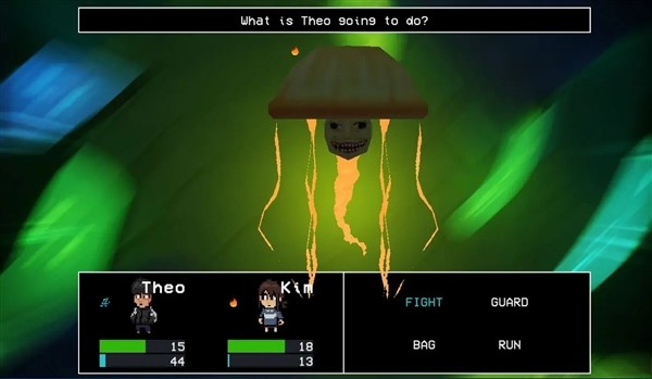 2.回合制战斗(核心)经典回合制模式,无自动作战功能,需手动选择攻击、防御、使用道具或释放技能。敌方均为定制化首领对战,无重复杂兵,包含人脸锤头鲨、畸变海龟、变异水母及最终首领海豚。成长系统:击败怪物可获取经验值,升级后解锁全新技能,稳步提升生存与作战能力。临时武器:可在馆内搜寻消防斧等道具,作为临时作战装备使用。
