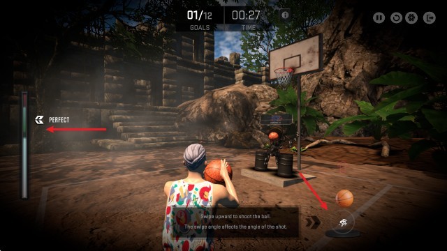 1、滑动右侧的篮球即可蓄力投篮。