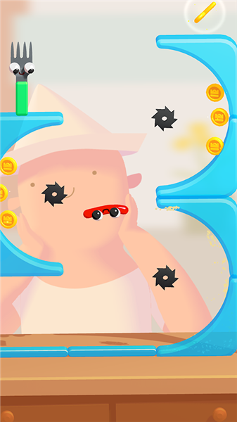 3、落到叉子上便可闯关;