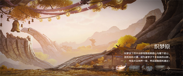 背靠群山的丰云野里,巨型枯木、茅草屋与风铃错落,暖光笼罩下的田园充满治愈气息,传说丰云钟声能保佑考试顺利。