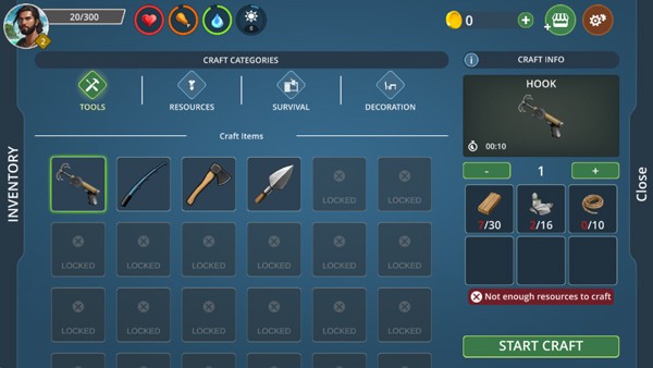 4、制造工具与扩建:从制作最基本的工作台开始,逐步解锁更高级的工具、武器和房屋组件,把简陋的木筏打造成坚固的海上基地。