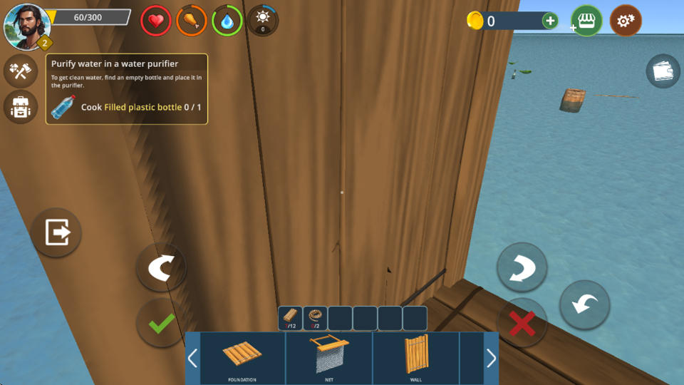 2、搜寻求生资源:食物和淡水极度匮乏,你需要用钩子打捞海上漂浮的木板、塑料瓶等一切可用资源,它们是活下去的唯一希望。