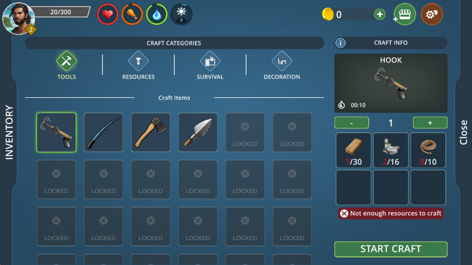 - 制造工具、武器和生存必需品,逐步提升生存能力。