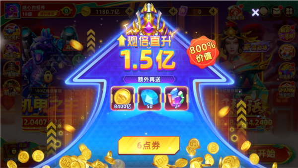 3、解锁万倍强力炮台,暴击手感十足,对局轻松逆风翻盘,快速积累海量财富。