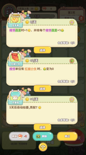 5、每到新的一天都能选择新的植物,每种植物都有不同的效果。