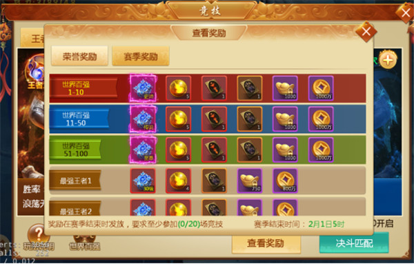 4、更有荣誉值奖励和专属的王者之戒等你抢夺!王者巅峰竞技,争夺全服霸主!
