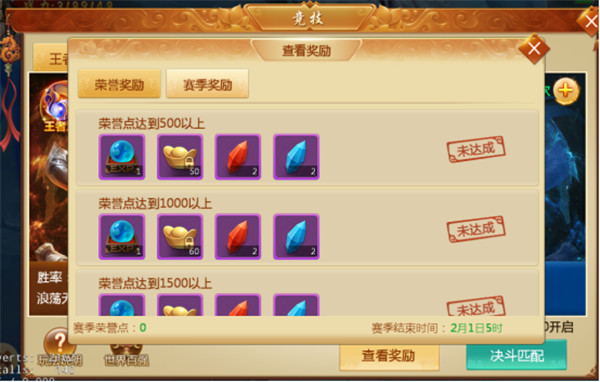 2、王者竞技为全服1v1竞技活动,胜方可获得荣誉值和段位积分;