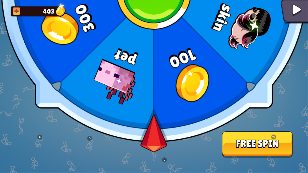 3、点击左侧-lucky spin幸运旋转,三个小时可以免费抽奖一次