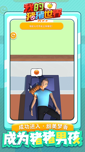 3、休闲解压娱乐:游戏节奏舒缓轻松,随着游玩进度提升,还能解锁更多新奇的睡眠挑战玩法。