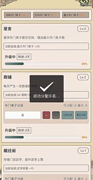 4、任务发布:设定内外门弟子执行巡逻、采药等日常任务,自动产出基础材料。