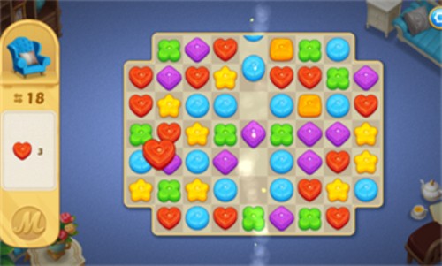 1、游戏玩法主要分为两个基础板块,一个就是玩家们非常熟悉的消除,通过闯关完成关卡内的消除目标。消除规则则是基于传统三消打造,将同色的相同物品进行成行或成列移动即可消除。