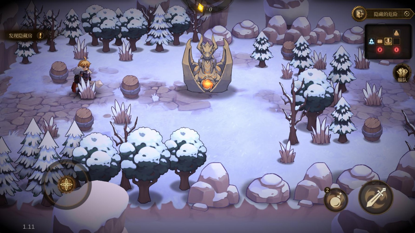 3、进入地图后左边控制角色的移动,右边是进行攻击,当遇到敌人后会触发战斗。