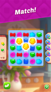 2、游戏玩法是消除和经营相结合的方式,整体操作起来就非常舒服,玩累了可以装修,装修没有资源了就继续玩非常有趣,整体的操作也是比较简单的经典的三消消除类玩法,玩家还可以根据自己的创意来完成你的家园装修自由度很高